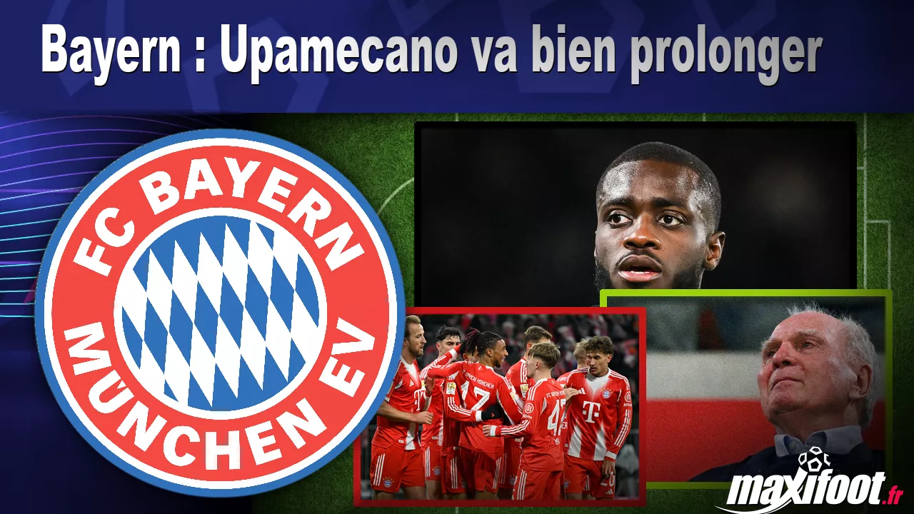 Upamecano prolonge avec le Bayern Munich ! Après plusieurs mois de suspense, Dayot Upamecano, défenseur de 27 ans, a signé une prolongation de contrat avec le Bayern Munich, un engagement qui symbolis...